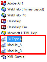 The turquoise tint in the book for Module A is an indicator that all the topics in that book are in the printed output. If any or all the topics under that book in the TOC are not in the printed output, then the tint will be cream as shown for Module B. - Note that books under Chapter Layout equal chapters in your document. The book icon under Chapter Layout enables you to create chapters in your document that do not match books in your TOC. This can be useful where you need a different structure in the printed output. You can change the title of the chapters but it is a bit tricky. Click here for instructions.Click here for instructions.