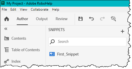 1. Click the Snippet icon in the project toolbar on the left and any snippets already created will display alongside in the Snippet Panel.