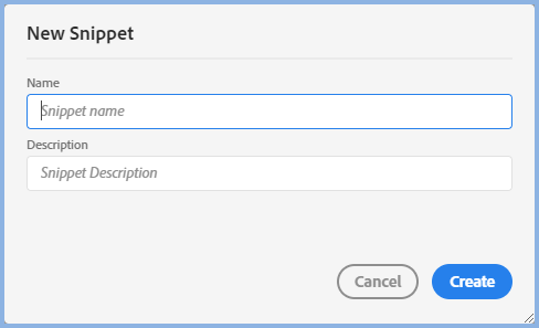1. Set the fields as required and click Create to open a blank Snippet in the Design Editor.