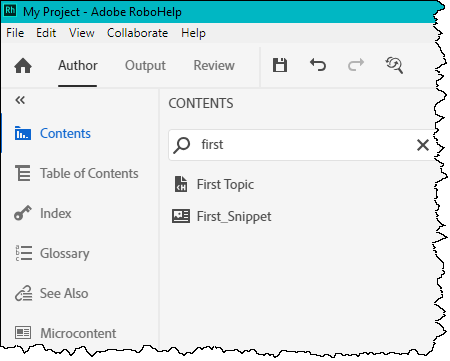 The Contents Panel shows all the topics in the project, rather like Project Manager in older versions of Adobe RoboHelp.