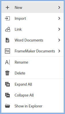 For example, if you had all your images in a folder named Images and your media files in a folder named Media, in Adobe RoboHelp you would see Assets > Images and Assets > Media. Wherever they were pre-upgrade, the structure was mirrored within Assets.