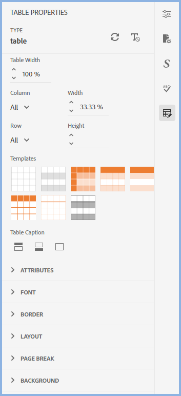 If a table has focus, an additional icon and Table Properties will be displayed so that you can edit the table as described in RH2020 Tables. |