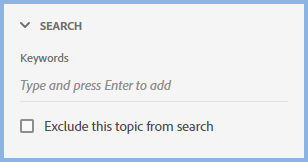 Search Here you can set any search keywords that you want the user search to find in addition to words in the text. Also you can exclude the whole topic from the search. Type in the keyword and press Enter. |