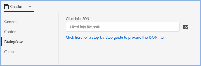 - A Chatbot engine for the Chatbot Client, such as Google's Dialogflow supported by Adobe RoboHelp.